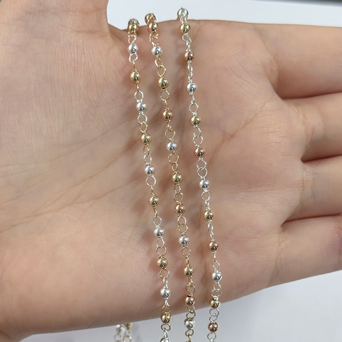 Vintage New Handmade Gold Filled 3MM Bead Chain Permanent Jewelry DIY Making Delicate Rose Gold Sterling Silver Ball Twist Chain