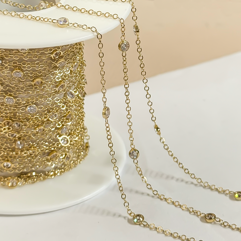 Vintage Real 14K Gold Filled 2mm Claw Setting Zircon Chain for DIY Necklace Bracelet Jewelry Making Permanent Supplies