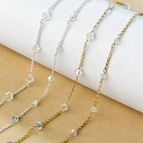 14k सोने से भरी रोल चेन क्रिस्टल बेड सिल्वर 925 चेन, महिलाओं के गहने ब्रेसलेट हार
